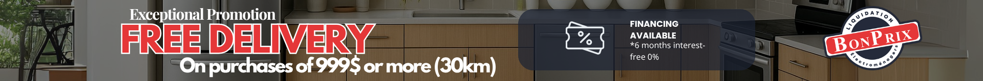 Don't wait any longer! Visit Bonprix Électroménagers today and discover the best selection of big appliances at unbeatable prices. With our extensive range of brands, incredible discounts, financing options, and weekly promotions, you are guaranteed to find the perfect appliance that meets your needs and exceeds your expectations. Transform your home into a haven of convenience and style with Bonprix Électroménagers, where quality, affordability, and customer satisfaction are our top priorities.