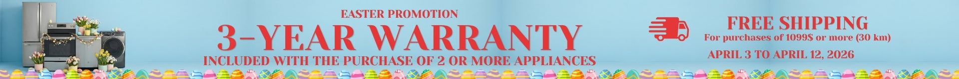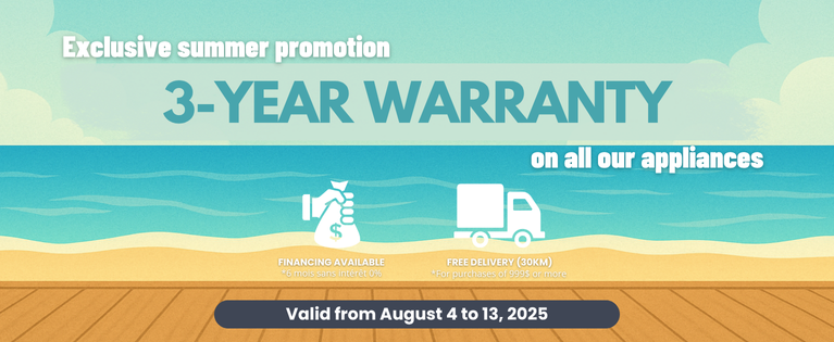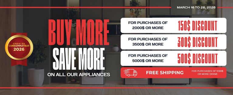 At Bonprix Électroménagers, we are committed to providing exceptional value to our customers. That's why we have exciting promotions every week, offering you even more opportunities to save on your favorite appliance brands. From special discounts on specific models to bundle deals that provide incredible savings when you purchase multiple appliances, our promotions are designed to help you get the most bang for your buck. Check our website regularly to stay up to date with our latest offers and promotions.